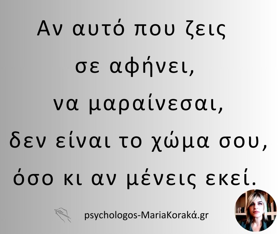 Αν αυτό που ζεις σε αφήνει, να μαραίνεσαι, δεν είναι το χώμα σου, όσο κι αν μένεις εκεί.