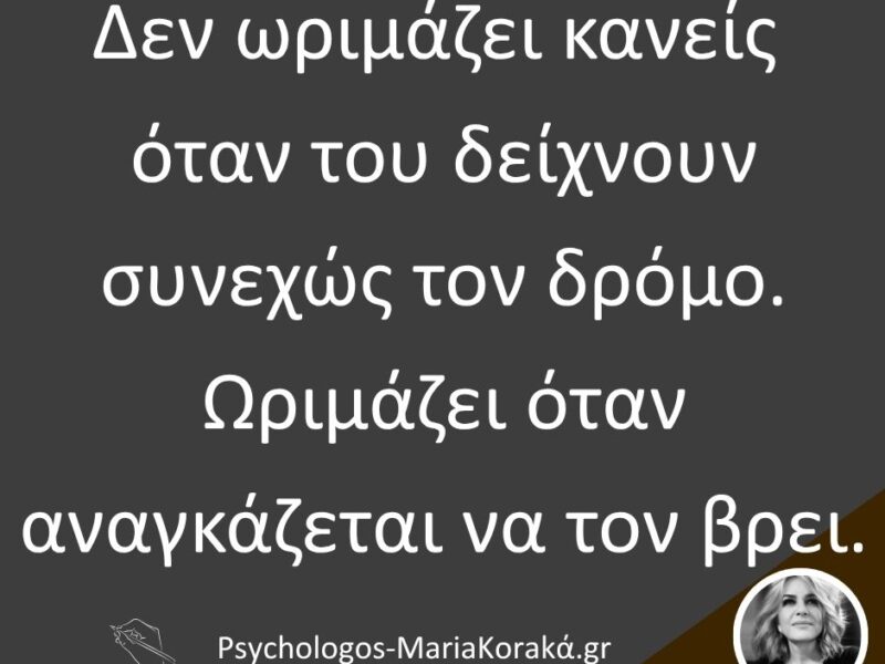 07 Απρ Δεν ωριμάζει κανείς όταν του δείχνουν συνεχώς τον δρόμο. Ωριμάζει όταν αναγκάζεται να τον βρει.