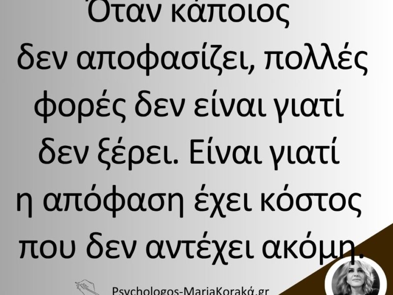 07 Απρ Όταν κάποιος δεν αποφασίζει, πολλές φορές δεν είναι γιατί δεν ξέρει. Είναι γιατί η απόφαση έχει κόστος που δεν αντέχει ακόμη.