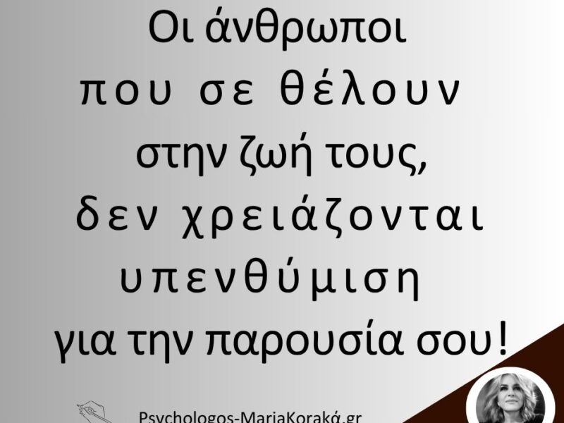 17 Νοέ Οι άνθρωποι που σε θέλουν στην ζωή τους δεν χρειάζονται υπενθύμιση για την παρουσία σου! Posted at 09:33h in Εαυτός: Το πιο μακρύ ταξίδι με τον πιο σημαντικό προορισμό 0 Comments ΠΕΡΙΣΣΟΤΕΡΑ