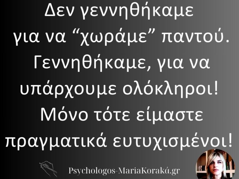 14 Απρ Δεν γεννηθήκαμε για να “χωράμε” παντού. Posted at 22:10h in Εαυτός: Το πιο μακρύ ταξίδι με τον πιο σημαντικό προορισμό 0 Comments ΠΕΡΙΣΣΟΤΕΡΑ