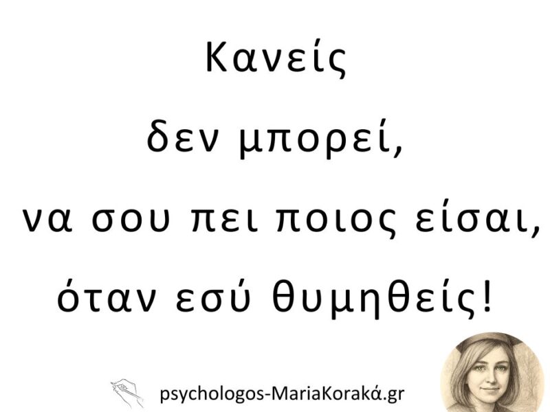 05 Απρ Μην ξεχνάς ποιος είσαι … Posted at 09:17h in Τα Αποστάγματα μιας Ψυχοθεραπεύτριας 0 Comments ΠΕΡΙΣΣΟΤΕΡΑ