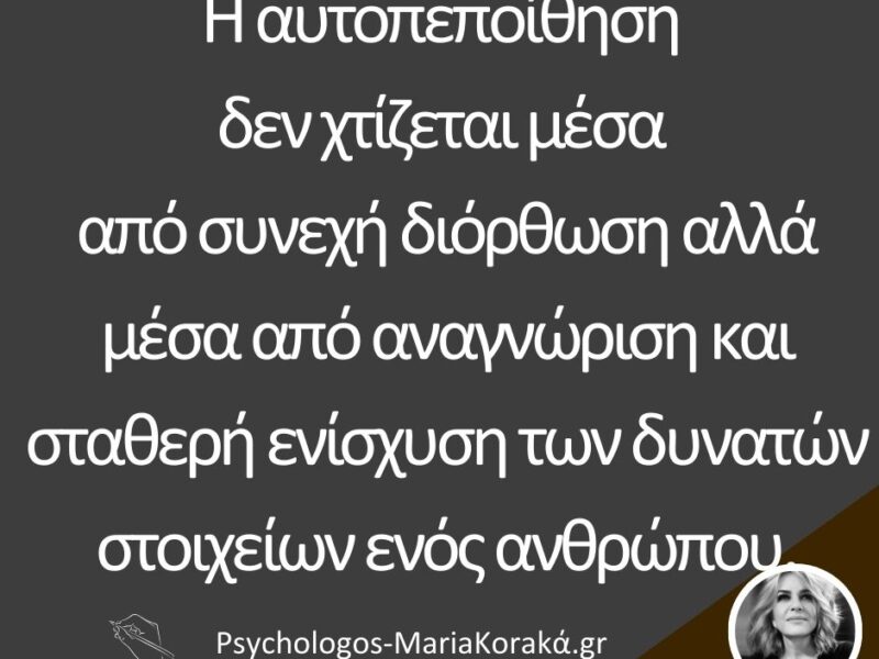 24 Φεβ Η αυτοπεποίθηση δεν χτίζεται μέσα από συνεχή διόρθωση αλλά μέσα από αναγνώριση και σταθερή ενίσχυση των δυνατών στοιχείων ενός ανθρώπου. Posted at 23:31h in Εαυτός: Το πιο μακρύ ταξίδι με τον πιο σημαντικό προορισμό 0 Comments ΠΕΡΙΣΣΟΤΕΡΑ