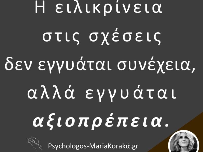 02 Μαρ Η ειλικρίνεια στις σχέσεις δεν εγγυάται τη συνέχεια. Εγγυάται όμως την αξιοπρέπεια. Posted at 10:44h in Ζευγάρι: Το δικό μας “μαζί” 0 Comments ΠΕΡΙΣΣΟΤΕΡΑ