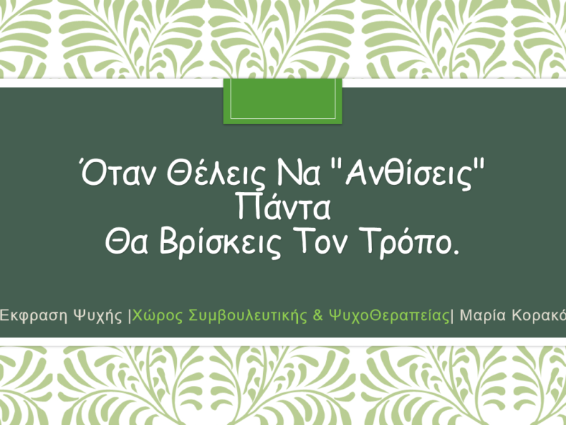 31 Οκτ Έκφραση Ψυχής | Χώρος Συμβουλευτικής & ΨυχοΘεραπείας Posted at 08:09h in ΜΑΡΙΑ Κ 0 Comments ΠΕΡΙΣΣΟΤΕΡΑ