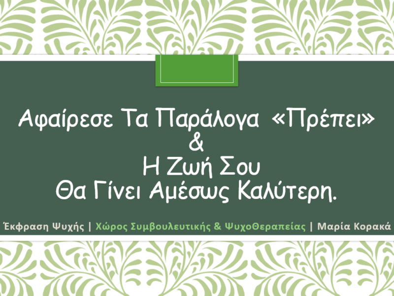 18 Οκτ Έκφραση Ψυχής | Χώρος Συμβουλευτικής & ΨυχοΘεραπείας Posted at 07:21h in ΜΑΡΙΑ Κ 0 Comments ΠΕΡΙΣΣΟΤΕΡΑ