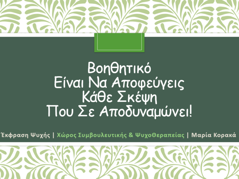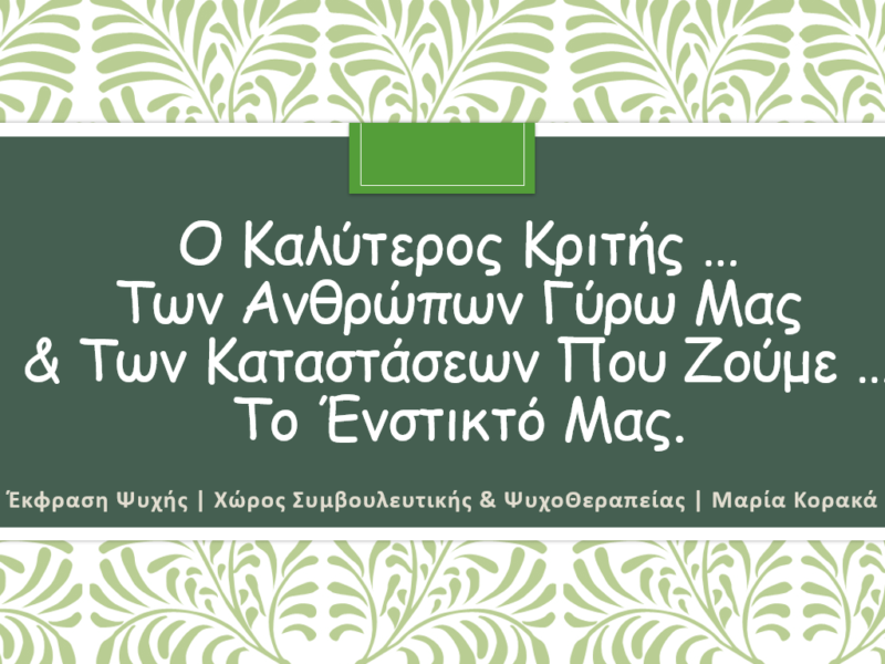 10 Οκτ Έκφραση Ψυχής | Χώρος Συμβουλευτικής & ΨυχοΘεραπείας Posted at 06:50h in ΜΑΡΙΑ Κ 0 Comments ΠΕΡΙΣΣΟΤΕΡΑ