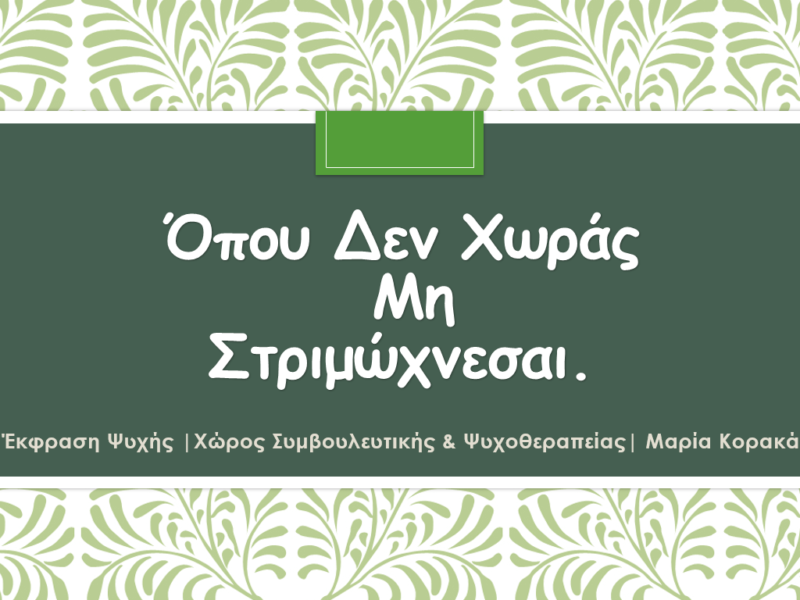 03 Αυγ Έκφραση Ψυχής | Χώρος Συμβουλευτικής & ΨυχοΘεραπείας Posted at 04:07h in ΜΑΡΙΑ Κ 0 Comments ΠΕΡΙΣΣΟΤΕΡΑ