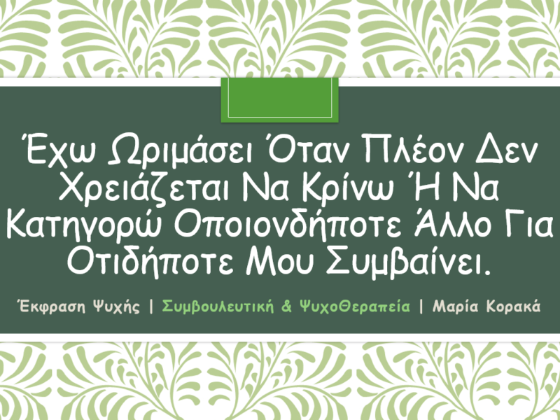 31 Ιούλ Έκφραση Ψυχής | Χώρος Συμβουλευτικής & ΨυχοΘεραπείας Posted at 19:42h in ΜΑΡΙΑ Κ 0 Comments ΠΕΡΙΣΣΟΤΕΡΑ
