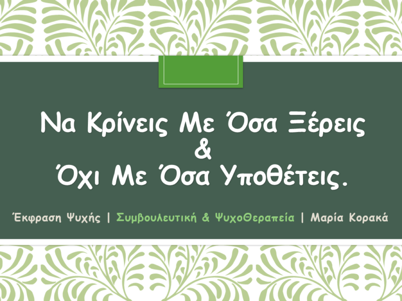 27 Ιούλ Έκφραση Ψυχής | Χώρος Συμβουλευτικής & ΨυχοΘεραπείας Posted at 04:23h in ΜΑΡΙΑ Κ 0 Comments ΠΕΡΙΣΣΟΤΕΡΑ