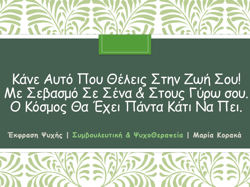 24 Ιούλ Έκφραση Ψυχής | Χώρος Συμβουλευτικής & ΨυχοΘεραπείας Posted at 21:26h in ΜΑΡΙΑ Κ 0 Comments ΠΕΡΙΣΣΟΤΕΡΑ