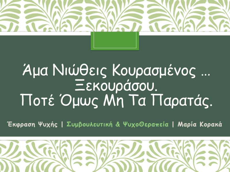 24 Ιούλ Έκφραση Ψυχής | Χώρος Συμβουλευτικής & ΨυχοΘεραπείας Posted at 20:42h in ΜΑΡΙΑ Κ 0 Comments ΠΕΡΙΣΣΟΤΕΡΑ
