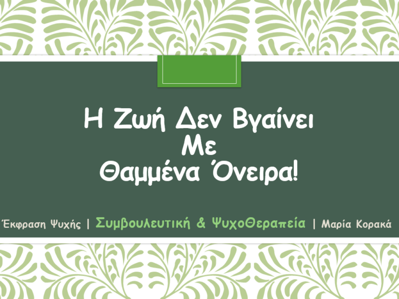 23 Ιούλ Έκφραση Ψυχής | Χώρος Συμβουλευτικής & ΨυχοΘεραπείας Posted at 05:42h in ΜΑΡΙΑ Κ 0 Comments ΠΕΡΙΣΣΟΤΕΡΑ