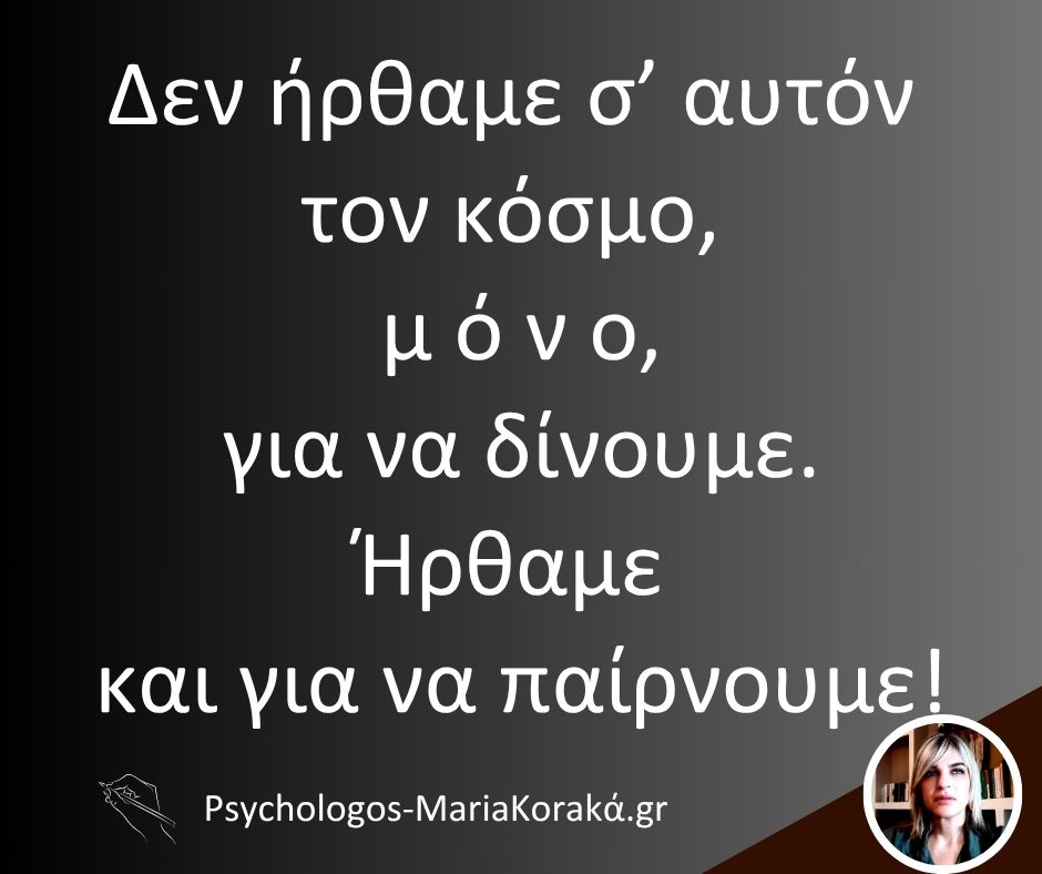 Δεν ήρθαμε σ’ αυτόν τον κόσμο, μ ό ν ο, για να δίνουμε. Ήρθαμε και για να παίρνουμε!