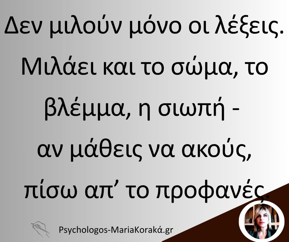 01 Αυγ Δεν μιλούν μόνο οι λέξεις. Μιλάει και το σώμα, το βλέμμα, η σιωπή – αν μάθεις να ακούς, πίσω απ’ το προφανές.