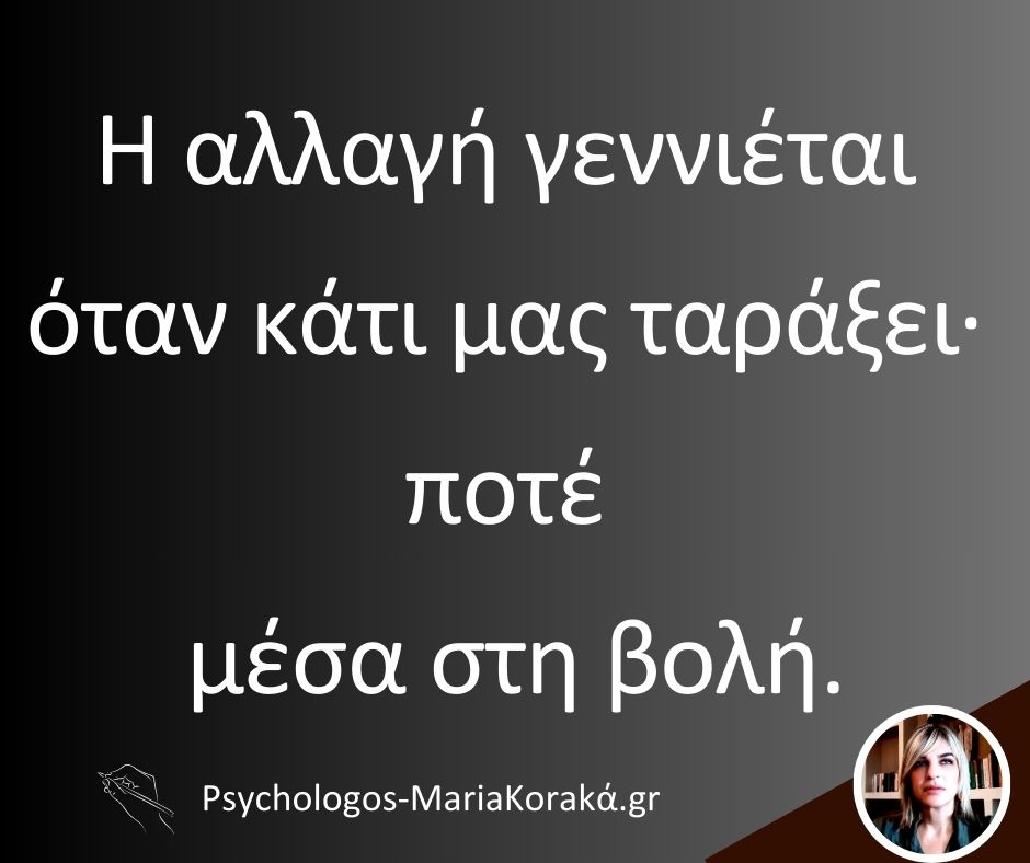 19 Αυγ Η αλλαγή γεννιέται όταν κάτι μας ταράξει∙ ποτέ μέσα στη βολή.