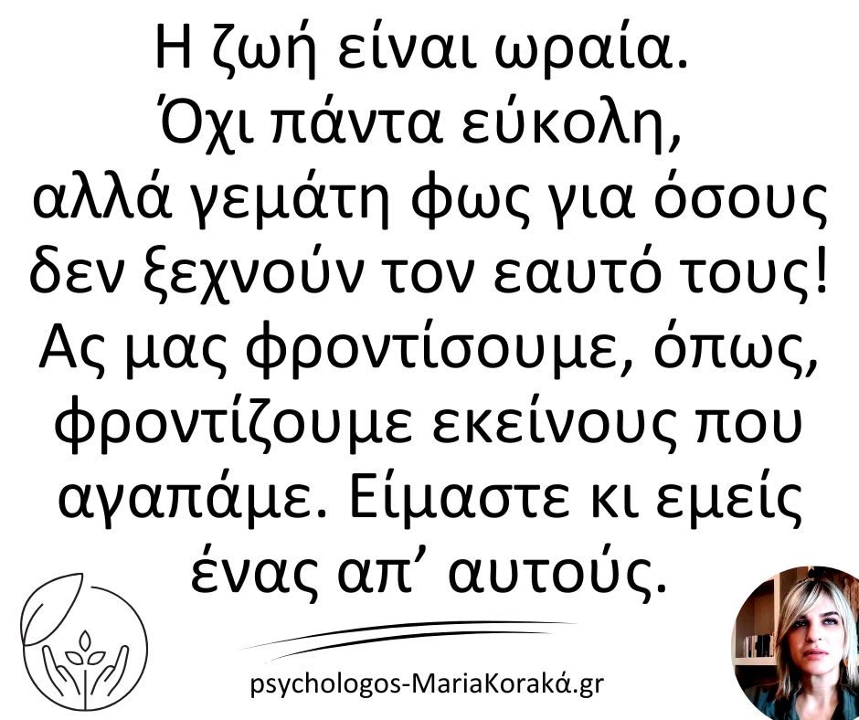Η ζωή είναι ωραία. Όχι πάντα εύκολη, αλλά γεμάτη φως για όσους δεν ξεχνούν τον εαυτό τους!