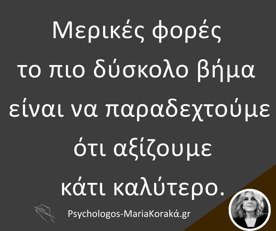 11 Μαρ Μερικές φορές το πιο δύσκολο βήμα είναι να παραδεχτούμε ότι αξίζουμε κάτι καλύτερο.