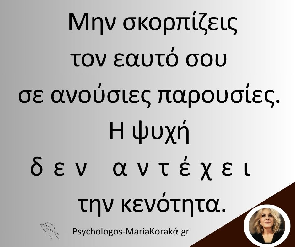 Μην σκορπίζεις τον εαυτό σου σε ανούσιες παρουσίες. Η ψυχή δεν αντέχει την κενότητα.