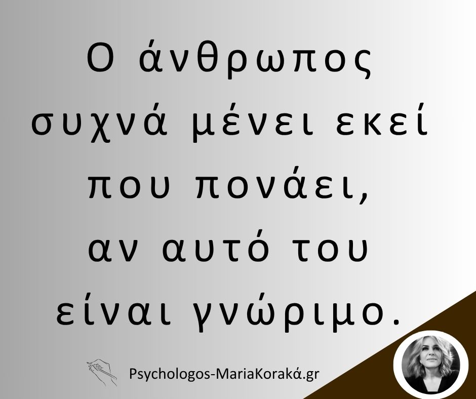 Ο άνθρωπος συχνά μένει εκεί που πονάει, αν αυτό του είναι γνώριμο.