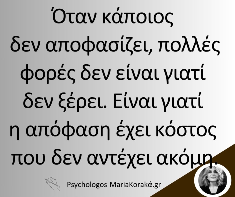 Όταν κάποιος δεν αποφασίζει, πολλές φορές δεν είναι γιατί δεν ξέρει. Είναι γιατί η απόφαση έχει κόστος που δεν αντέχει ακόμη.