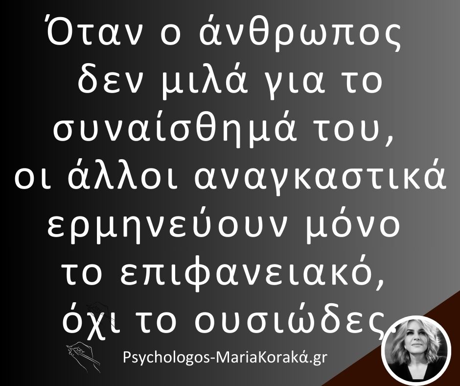 Όταν ο άνθρωπος δεν μιλά για το συναίσθημά του, οι άλλοι αναγκαστικά ερμηνεύουν μόνο το επιφανειακό, όχι το ουσιώδες.