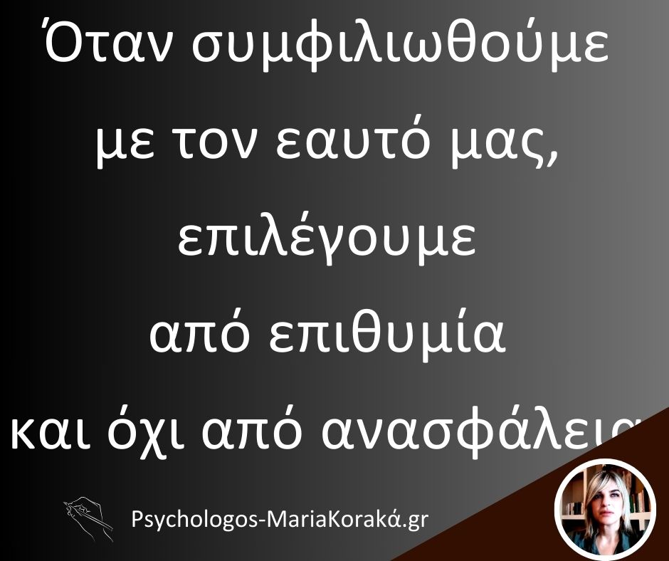 Όταν συμφιλιωθούμε με τον εαυτό μας, επιλέγουμε από επιθυμία και όχι από ανασφάλεια.